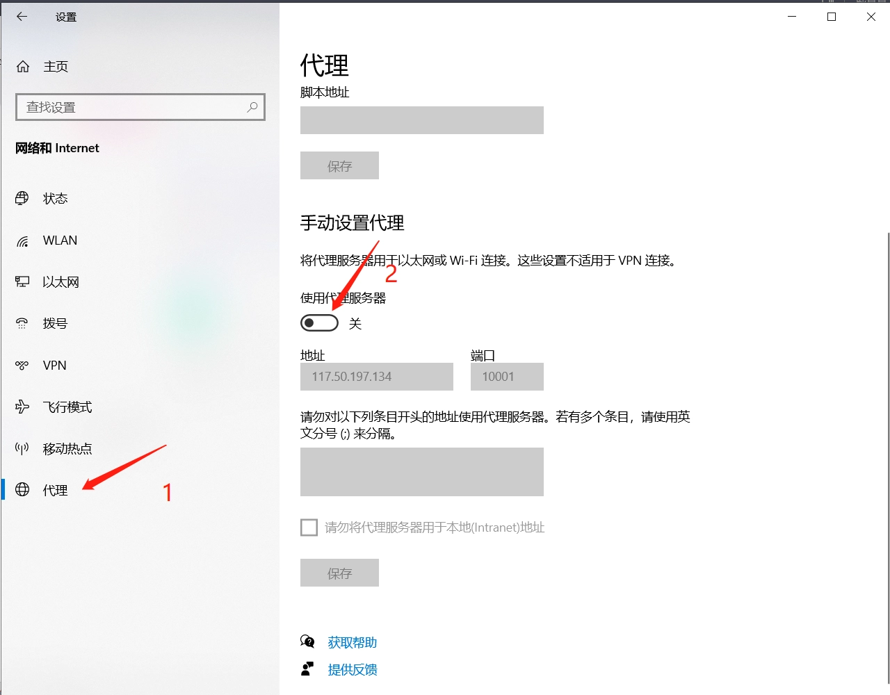 使用代理服务器选择为开;输入ip和端口;点击保存。