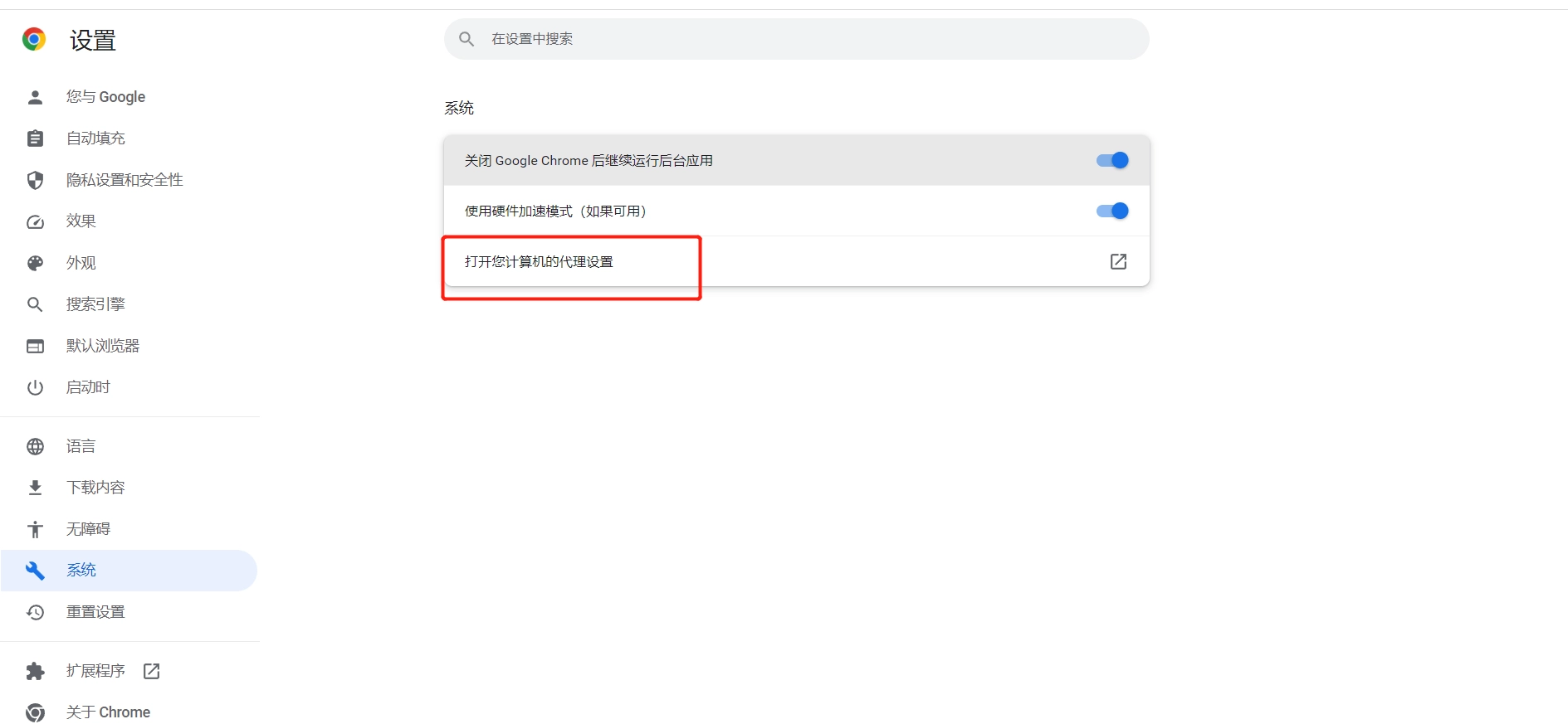点击右上角菜单;点击工具;点击代理服务器;选择代理服务器设置