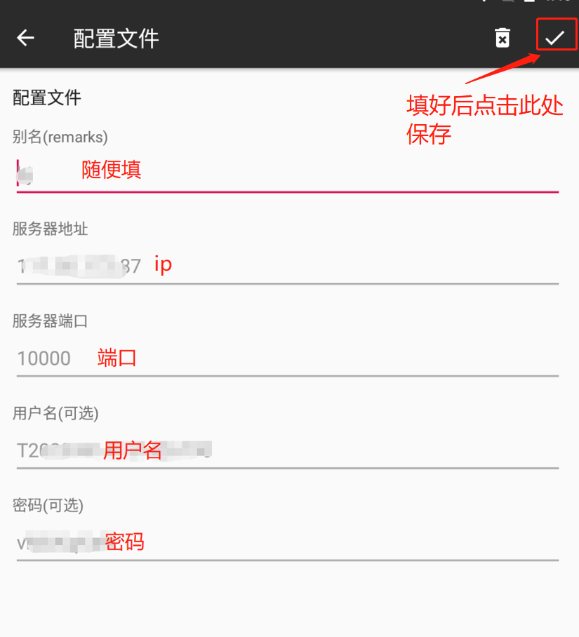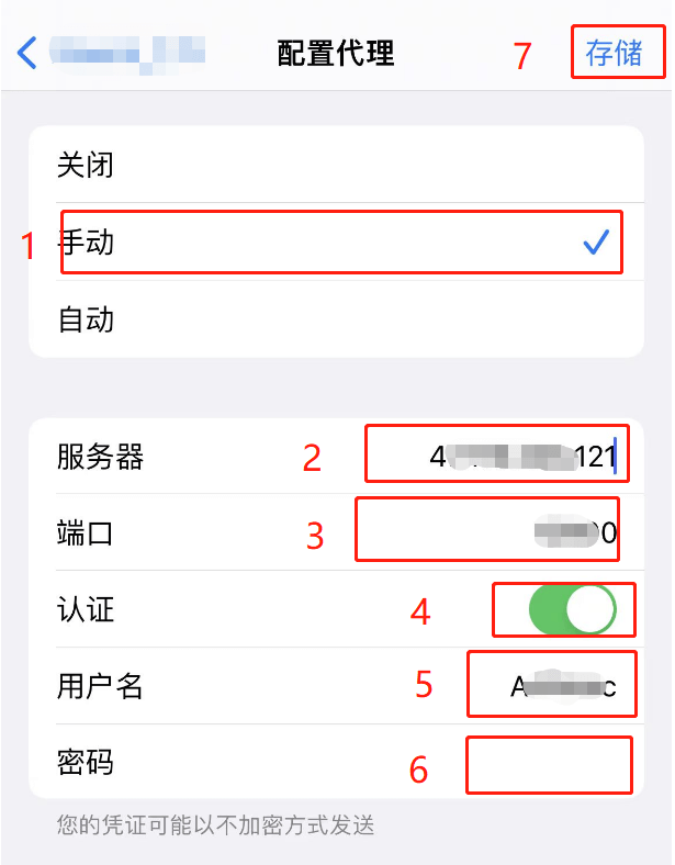 4、填写服务器(ip)、端口,启用认证、填写用户名、密码后点击右上角存储;