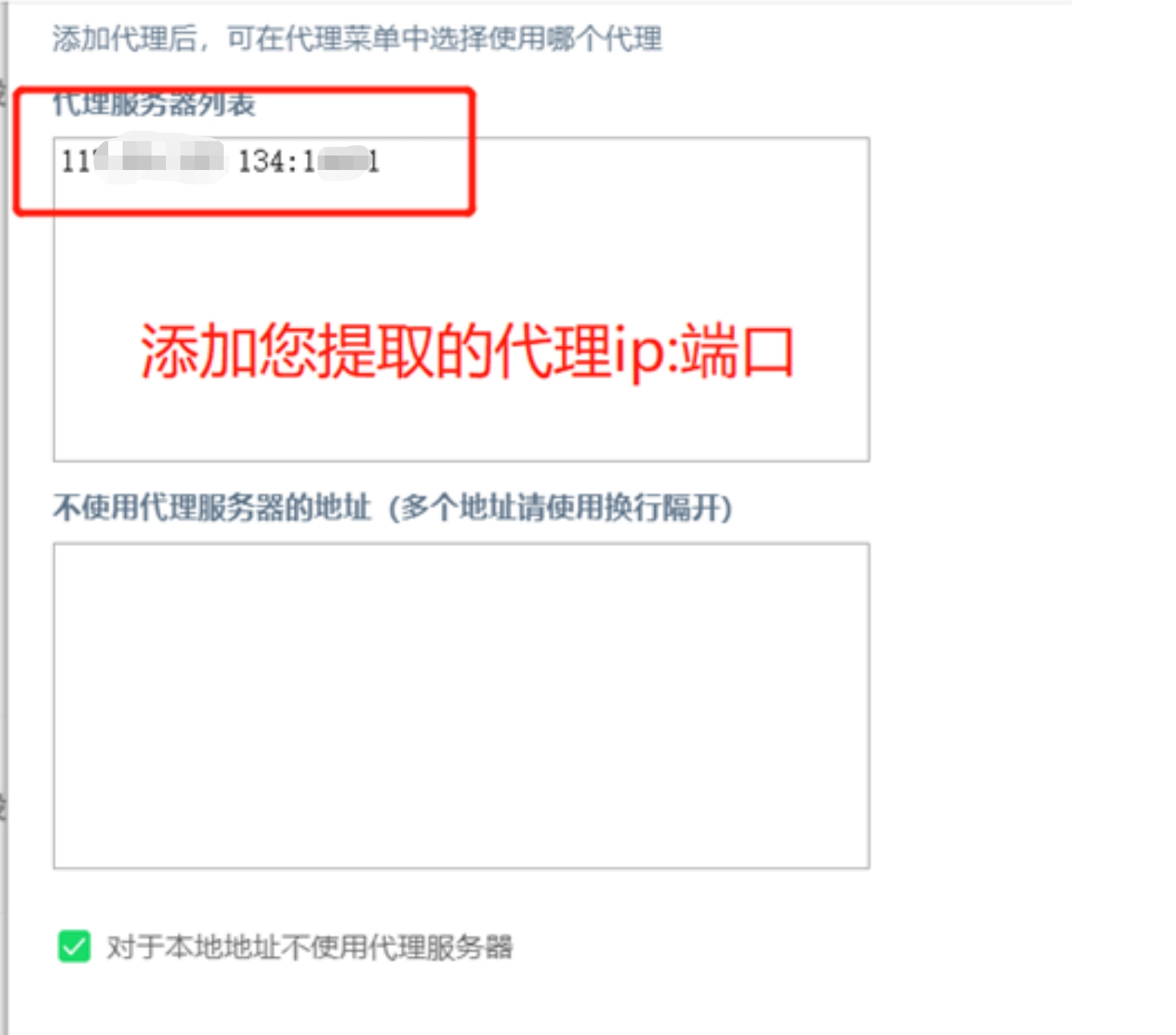 备注:socks代理格式:127.0.0.1:1080@socks;socks代理设置不支持使用用户名密码,必须预先设置白名单后才能使用。 使用代理ip